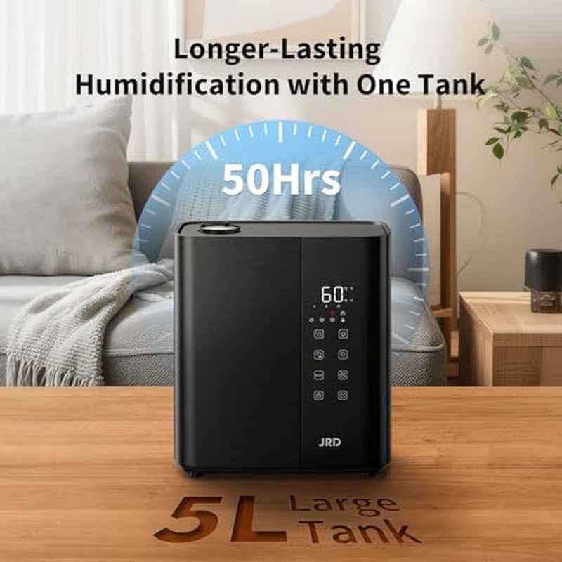 Smart Soundwave technology Humidifier for Large Rooms, 1.32gal Capacity with Remote Control, Auto Mode & 12H Timer, 50H Runtime, Quiet Operation, Digital Display, Ideal for Bedroom, Baby, Plants, Home & Office - Ideal for Large Spaces, Easy-Fill Water Ta
