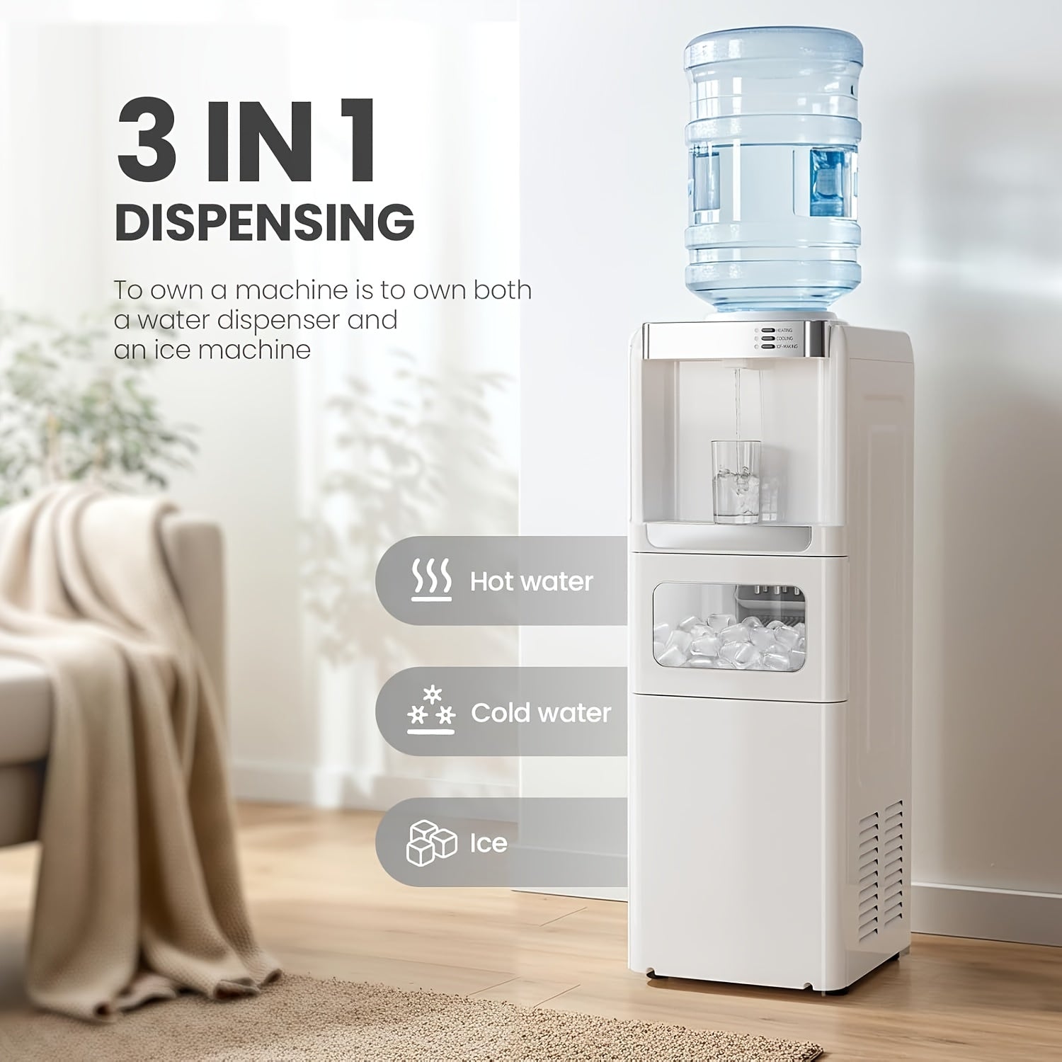 Water Dispenser with Ice Maker, 3-in-1 Hot And Cold Water Cooler with Built-in Bullet Ice Maker Machine, 33lbs\u002F 24H, Top Loading for 3-5 Gallon Bottle, Child Safety Lock, Espresso Machine 20 Bar, Cappuccino & Latte Machine with Automatic Milk Frother